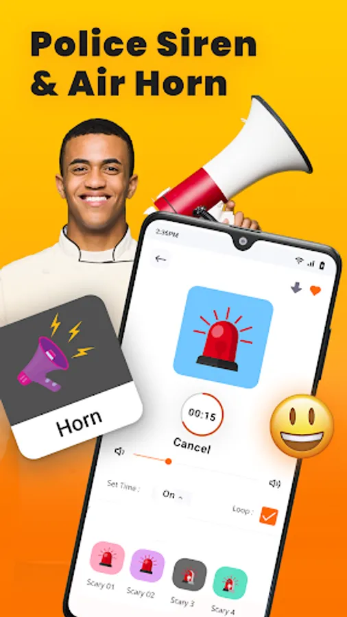 Prank your friends, family, and others with funny sound effects like fart sounds, siren sounds, scary pranks, loudest Air Horn sound, doorbell sounds, hair clipper prank, memes sound, and many more.