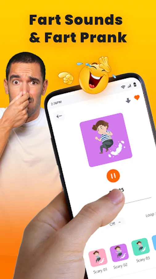 The prank app is a light-hearted and humorous app to play random fart sounds when triggered. The prank app aims to entertain and amuse users by using comedic sound effects, simulating a funny and unexpected situation. In the fart app, a fart prank sounds make the prank more hilarious. Prank your friends and family with funny burp and fart sounds.