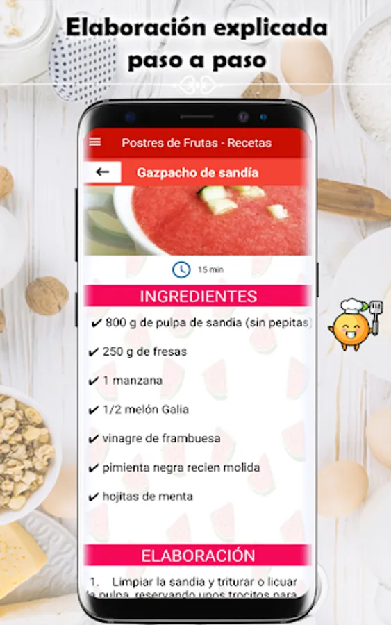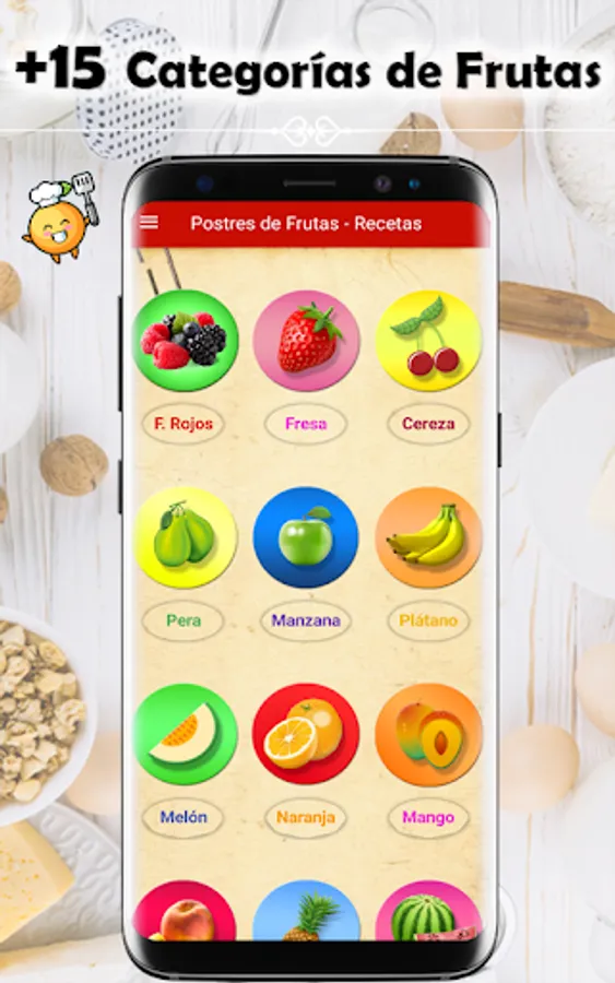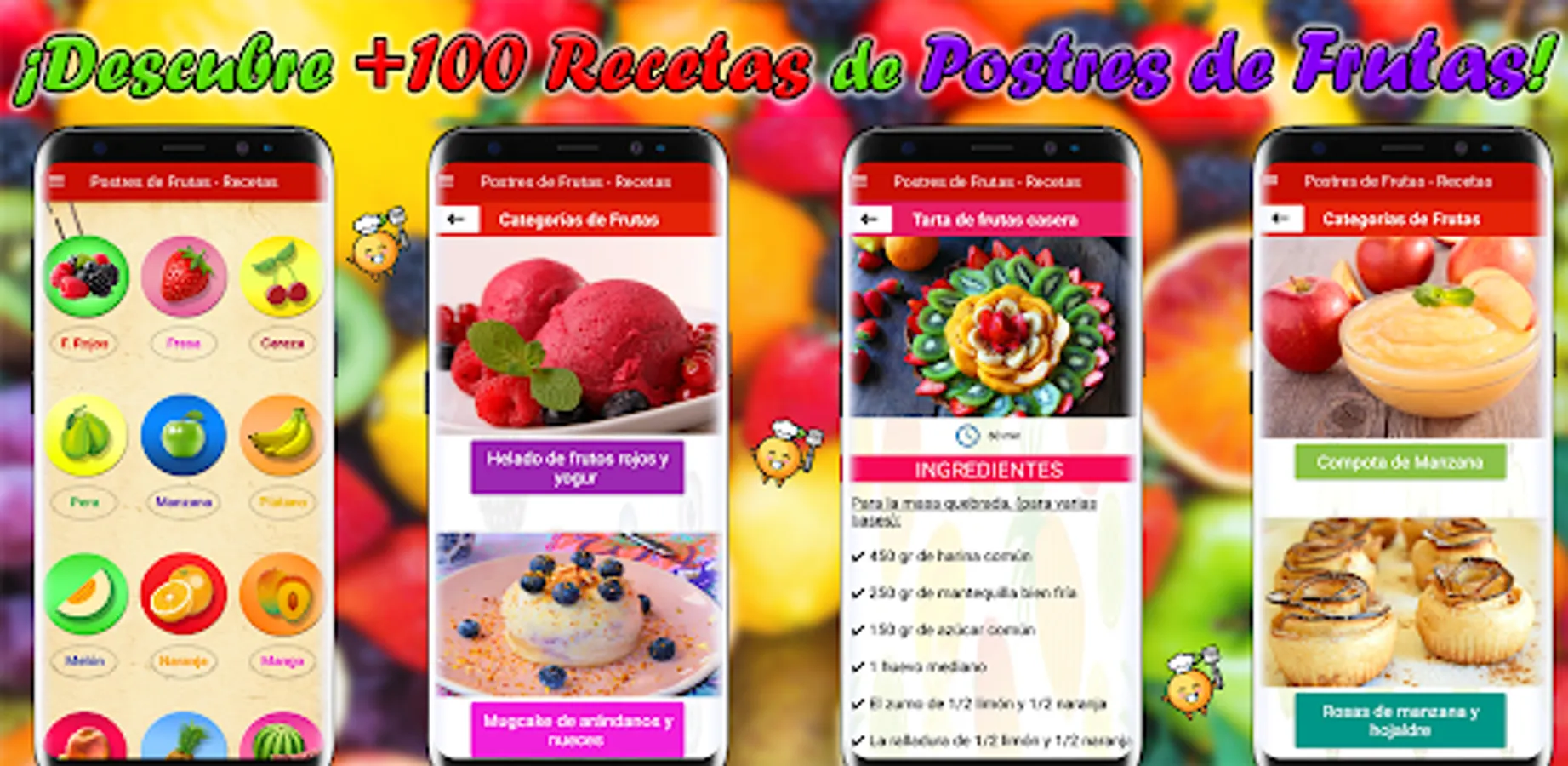 In the application you will discover 15 different categories of fruits so that you can make desserts with all kinds of fruits. In each category the main ingredient to be used in the dessert will be the selected fruit.