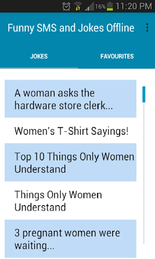 In this free app you're guaranteed to find a funny joke to put in your Facebook status or send abh a text message. At least twice as fun, kids. Impresses your friends more than a funny ringtone! You'll slap yourself on your forehead for not downloading this app earlier! This is one of the most popular free apps on the Android market. The great humor you will get from this app rubs off on you! Try it now and you'll see how funny it is.