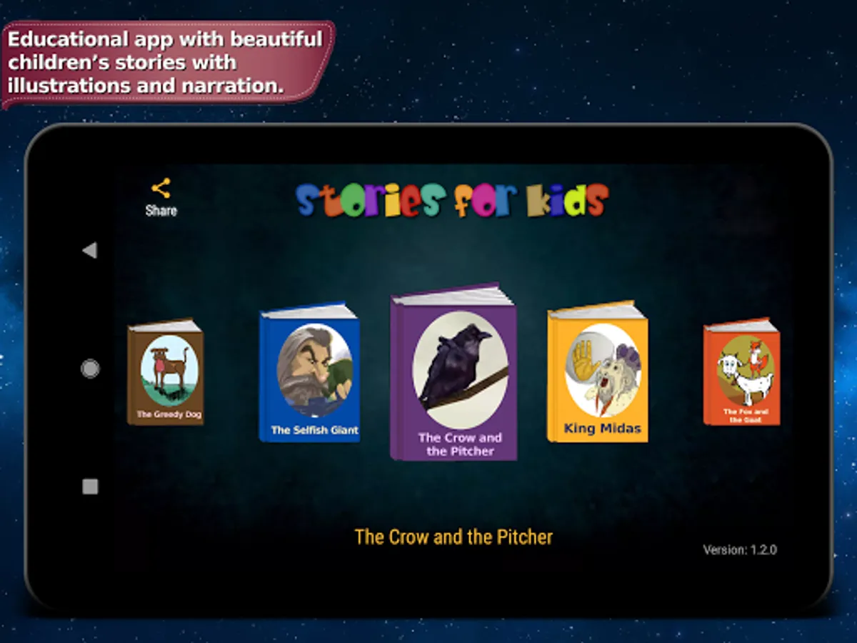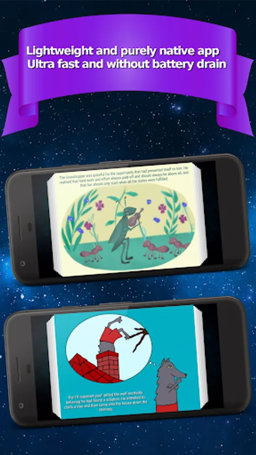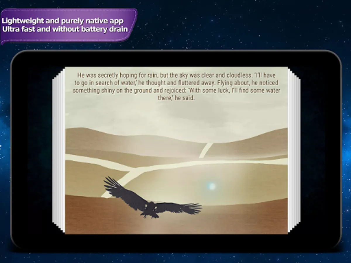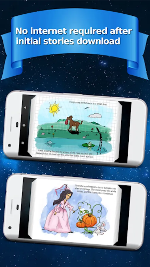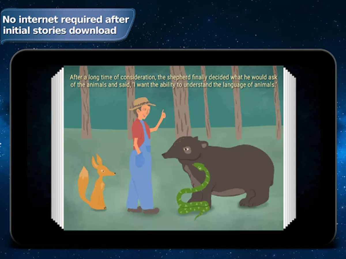 Do you want to develop your child's imagination and bring it into the magical world of fairy tales and fables? With this app you can finally use your smartphone in a smart way, and that means without having to connect to the internet! Your child will enjoy colorfully illustrated stories that are available in several languages including English accompanied by the captivating voice of the narrator.