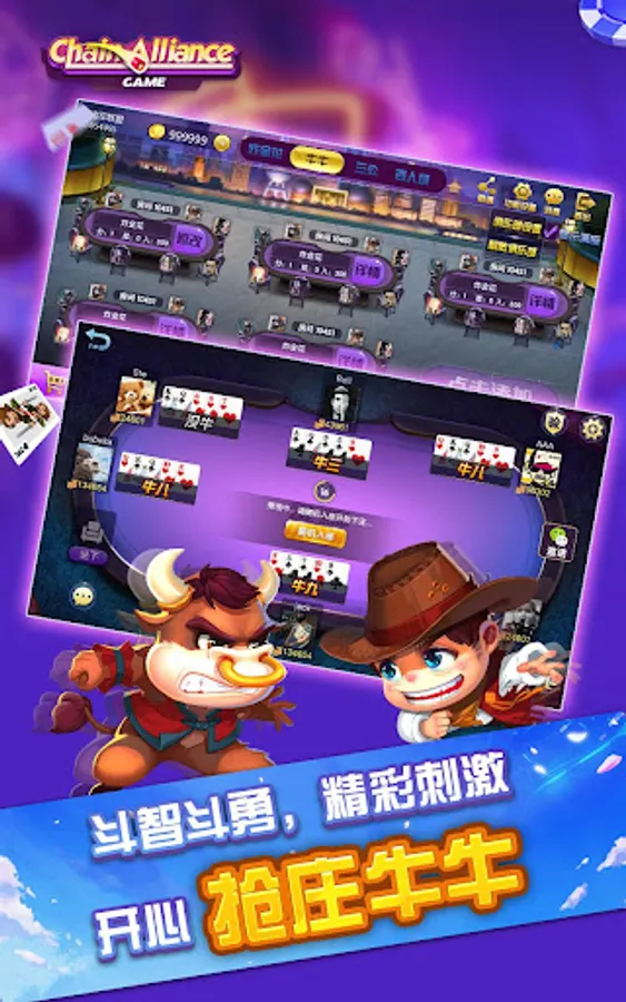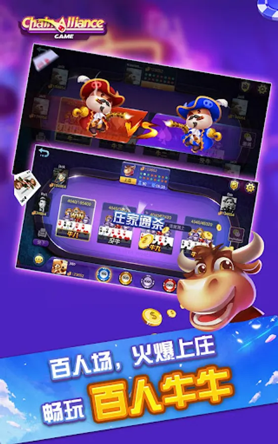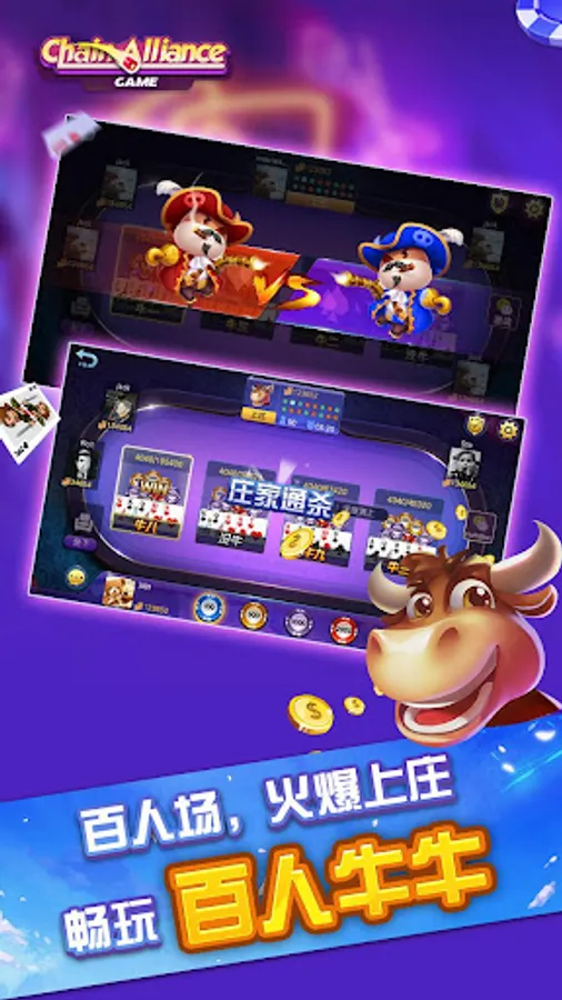 链盟游戏提供了多种热门游戏,抢庄牛牛、炸金花、百人场(百人牛牛、红黑大战、推筒子)等游戏,能丰富满足您对不同游戏的娱乐需求。