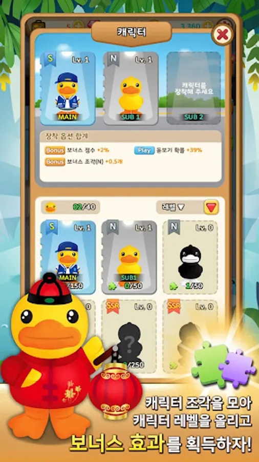 2. Collect various pieces of Virtue character, and get the bonus effect by raising the character level!