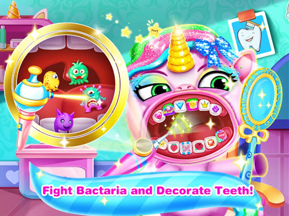 6.Let’s brush teeth to kill those germs in girls games free! It can help us fight bacteria to prevent tooth decay in the unicorn games for girls. Anyway, preventive dental care is important for eveyone!