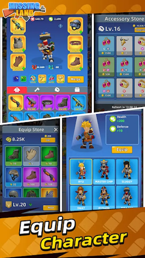 Missing Land is a survival+shooting+casual RPG game. You strayed into a missing land due to an air crash. It's time to build your base, equip your character, summon your companions, defeat enemies from different eras, and finally return to civilization!