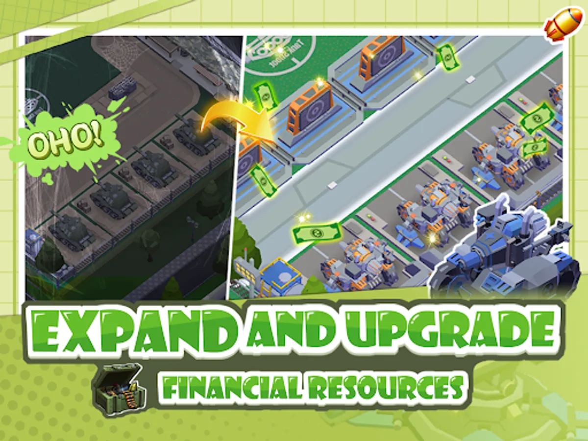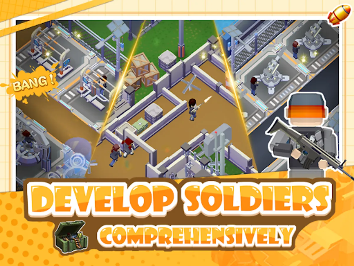 As you make progress with military training, you will earn a substantial amount of income to expand your camp. All training zones can be upgraded in terms of value, speed, capacity and queue size. Although you will have your ups and downs and might get punished for being lazy. But I'm sure you'll love developing your own military base!🕹