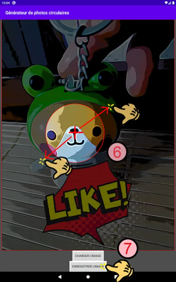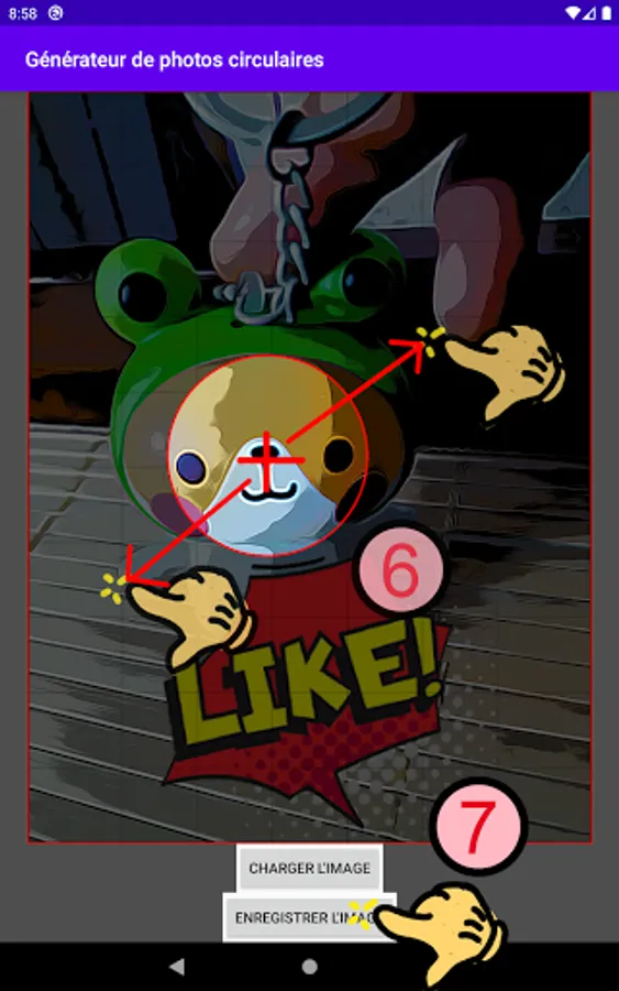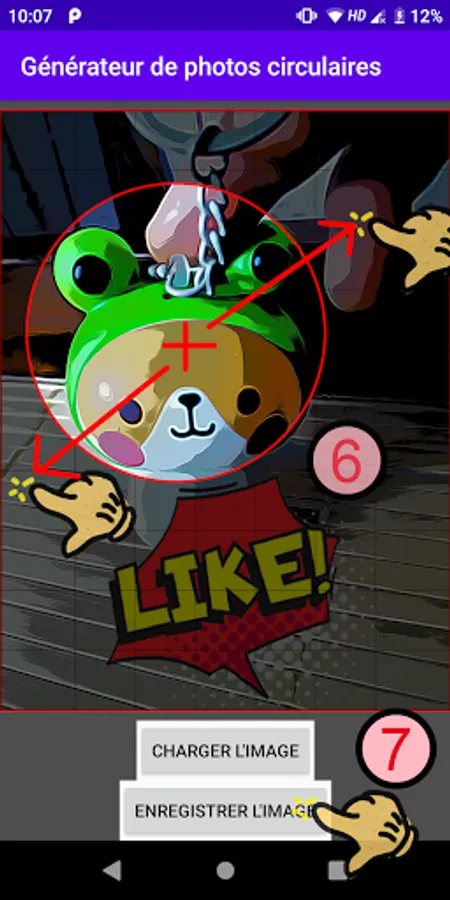 Crop the photo into a circular shape with your fingers.