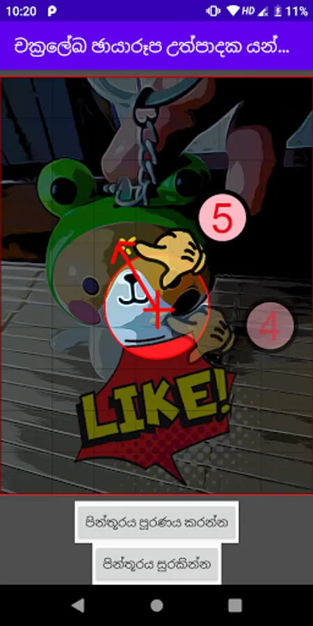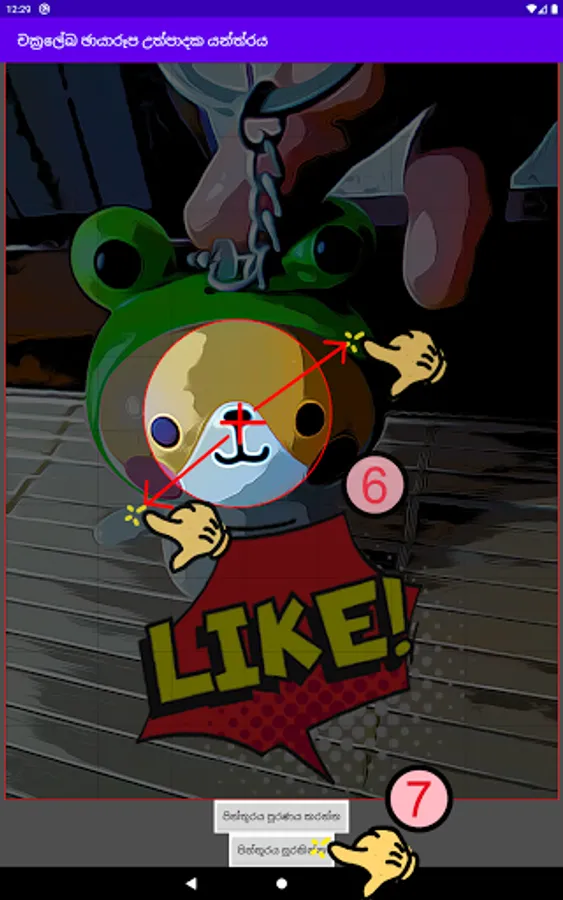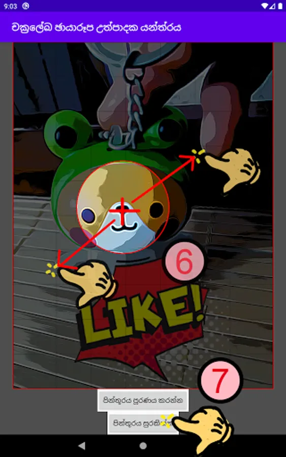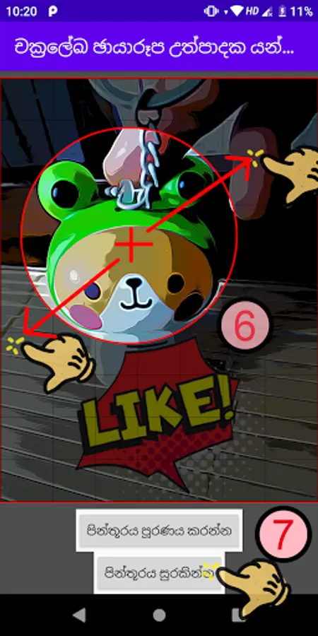 5 b. Use two fingers to lengthen the circle in the preview to different sizes.