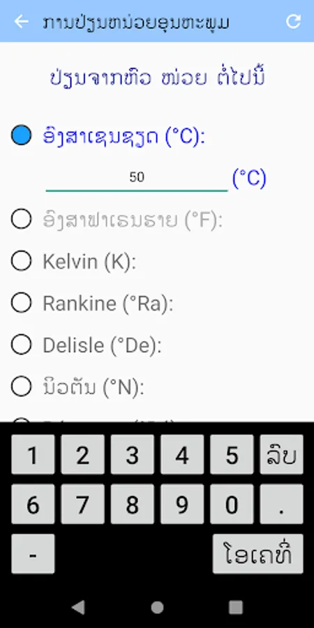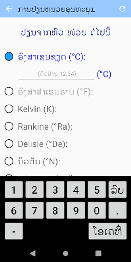 - Supports 8 types of temperature converter: