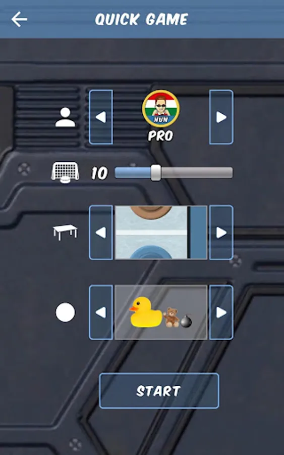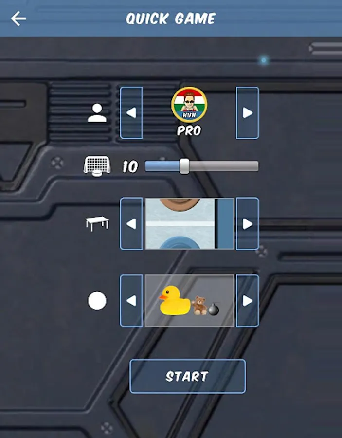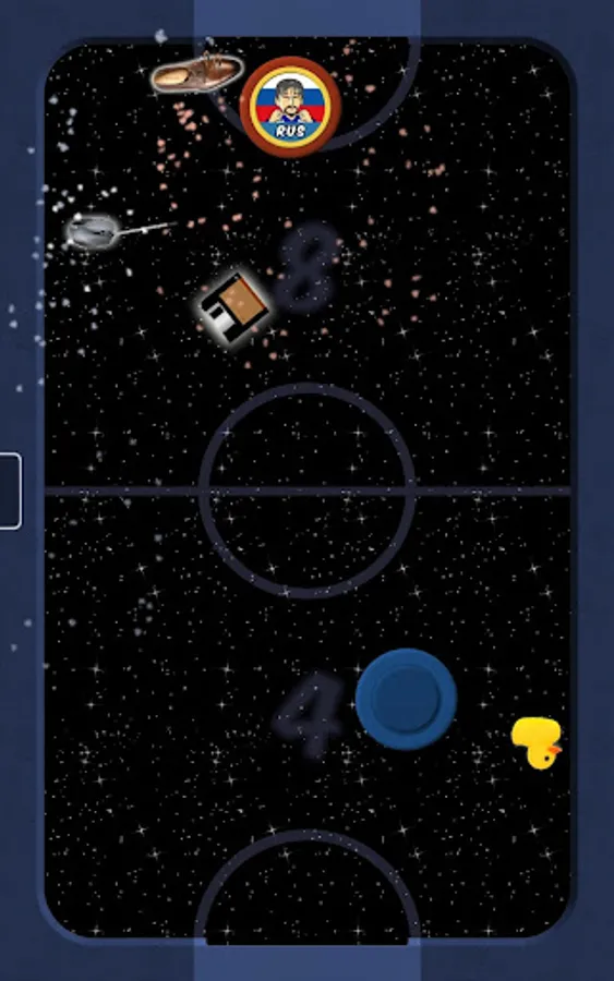 In Dumb Air Hockey Championship you can play with your friend or against Fun Rob's AI on 5 different levels. Dumb Air Hockey is easy to play, hard to master. Enjoy this arcade game, because it is filled with nice graphics glow effects, and sound effects and gameplay, pucks can be any funny things like rub duck, soap, glow phone or an exploding bomb. In a tournament you can chose different puck packs on different levels.
