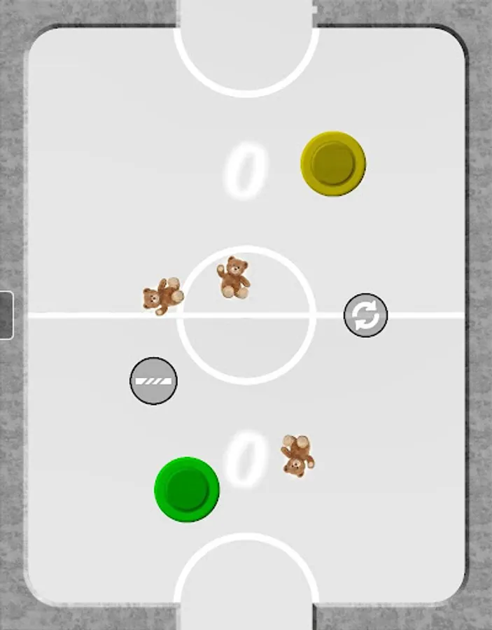 • 5 kind of Power Ups: snail slows down enemy's puck, barrier closes your goal, Plus enlarges your paddle or bat, etc...