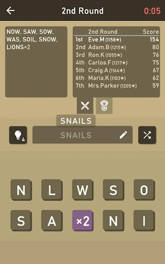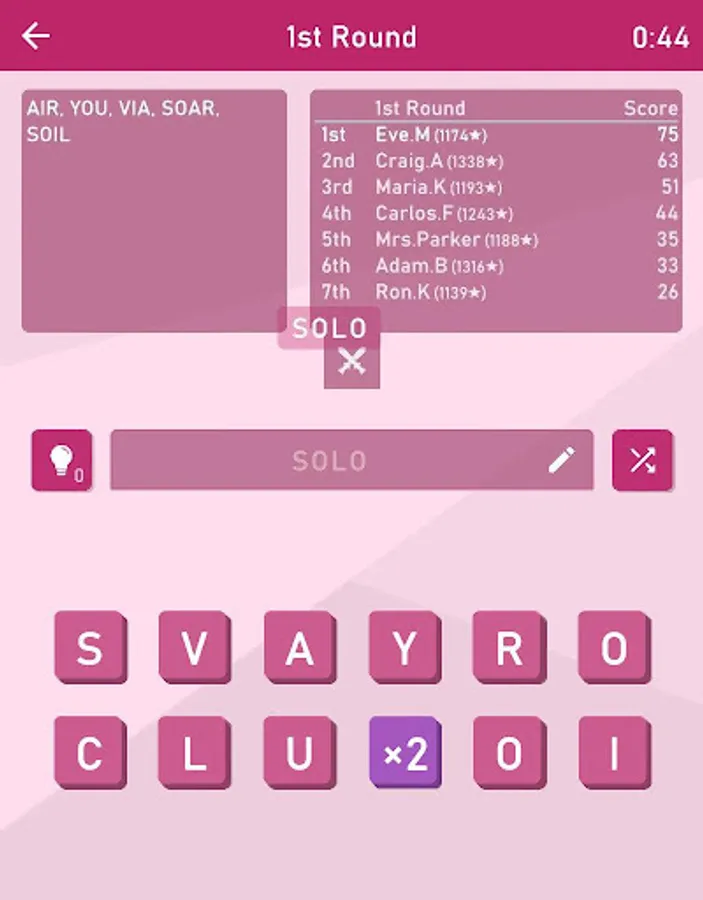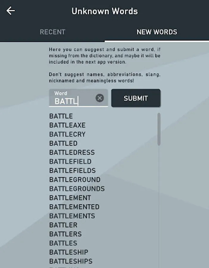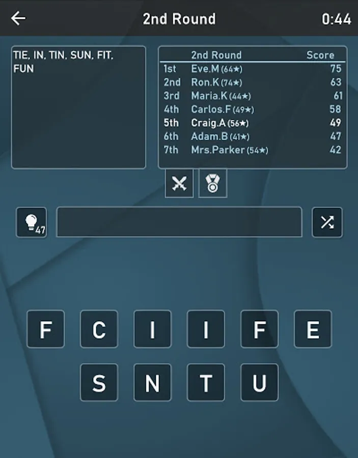 WordBattle is a great anagram multiplayer word game to practice English spelling skills, practice foreign languages, and extend your vocabulary. If you are a word game lover and you love each wordgame, text game and anagram puzzle, then you know finding words is much fun.