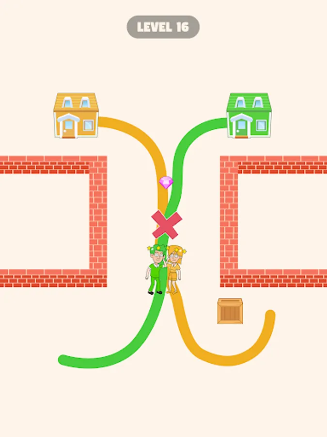 Draw to Home is a casual puzzle game. You need to help villains find their way to home, draw a line between the villains and their corresponding houses, and avoid the villains from bumping into each other. If they collide, they will be dizzy and the game will fail. To avoid all kinds of obstacles, let all the villains get home safely to win the game.