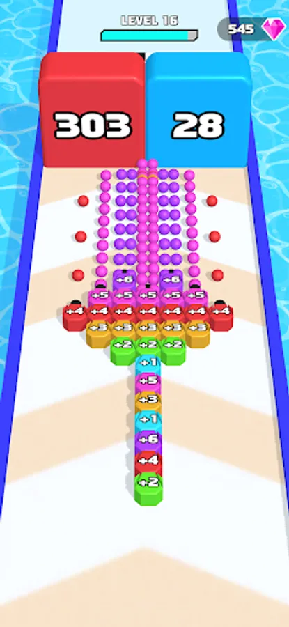 Sticky Numbers 3D is a casual puzzle game. In the game, you need to move left and right to gather the small squares scattered on the road. The larger the number on the small squares, the faster the bullet will be launched. Only enough small squares can have a huge firepower net and eliminate the blocks on the road. Of digital pillars. You also need to avoid obstacles, avoid digital blocks being destroyed, and keep your firepower strong enough.