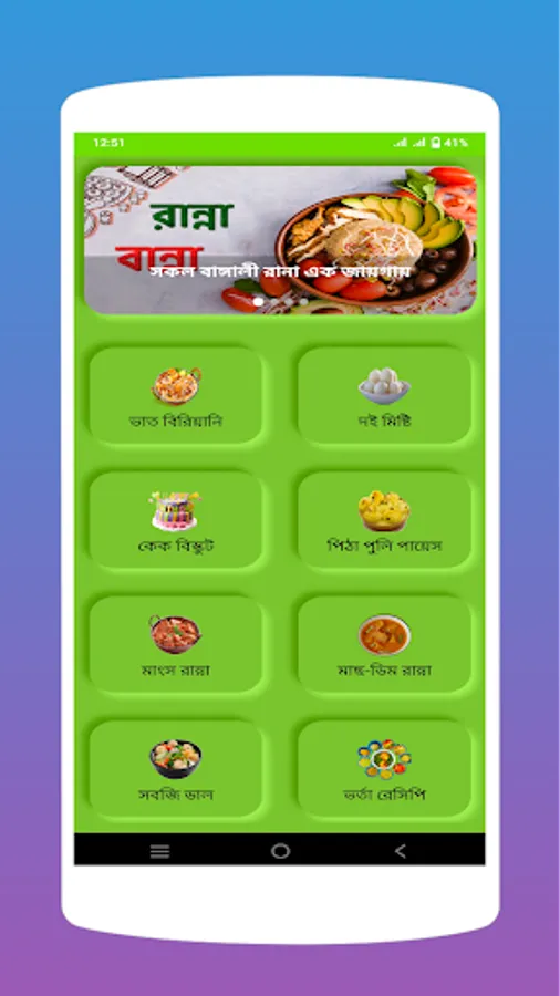 With this application you will be able to learn popular new recipes. The app is basically about Bengali recipes. All the recipes have been divided into different groups. In this app you will find everything -