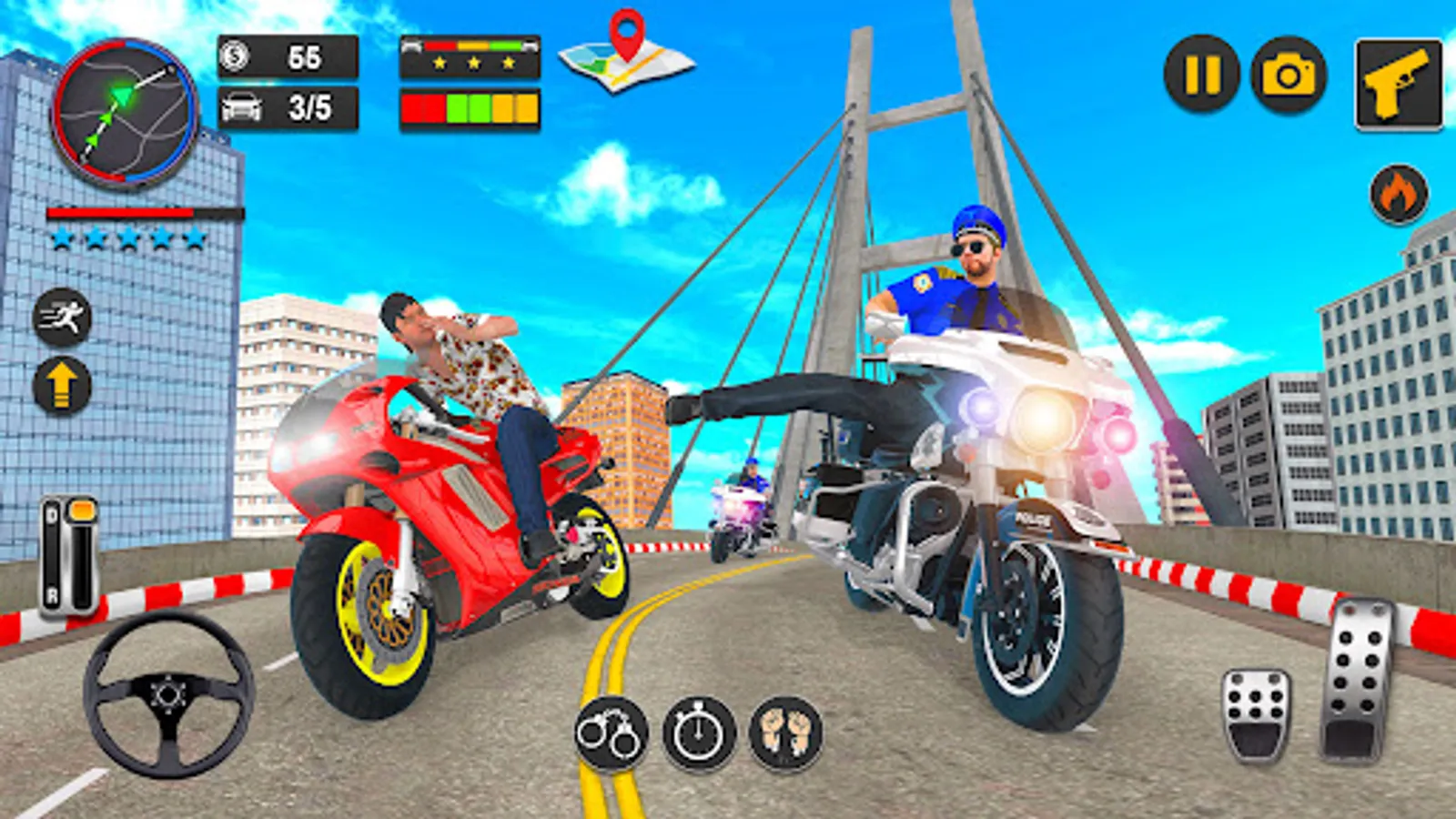 Link superior squad of US Police bike games and enjoy stirring adventure of bike simulator criminal chase mission in US motor bike chase 2021, prominence city criminal chase on real police bike racing permitted in the attractively designed city. Love this bike chase games & achieve all criminal escape missions in an extraordinary speed chase US cops motorbike chase 2020 street chase game. In this gangsters vs. Robs driving US Police motor bike chase 2020 game, you will be complex in exhilarating chase missions or realistic snatch bike motto bike chasing with various criminal chasing games city gangsters as patrolling officer of new york city police gangster chase strength by modern fast engine motorbike and motto bike exploited for supervision crime in this bike chaser game. In the city driving games criminals, thugs and thieves spread all above the city refuges. This ends now in police power smash game as you trip super speed motor-bike to surface crimes popular city chase master game. In this superlative chase game stiff with action simulator chase driver or easy bike chase games in bike driving simulator game using cop car castoff in city police to arrest gangster squad in this chase game unrestricted on the city streets of extremely troubled gangster city criminal chasing games. You have played a slice of police games but we spring you the diversity of chase up the game mission to adore this US Police motorbike chase 2020.