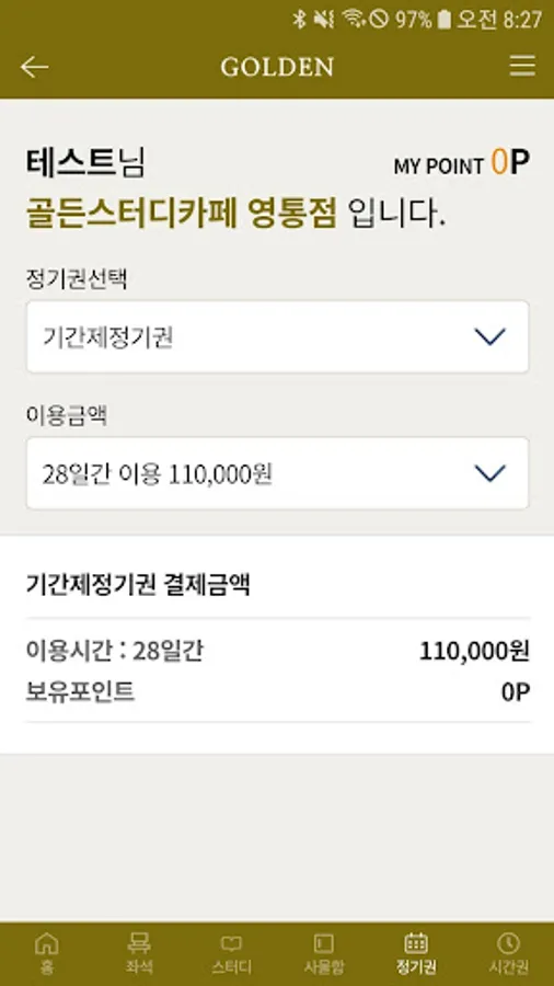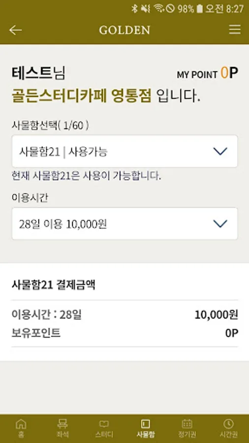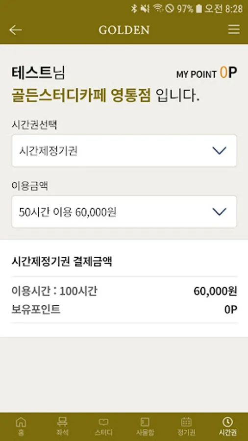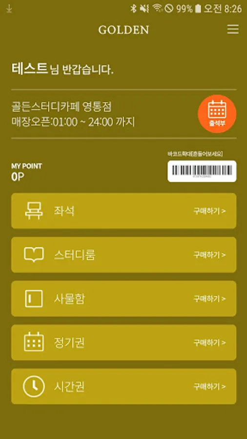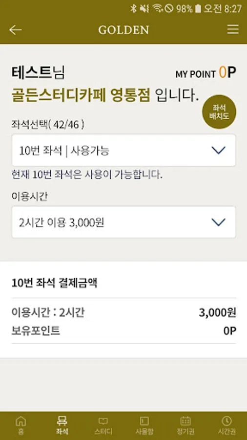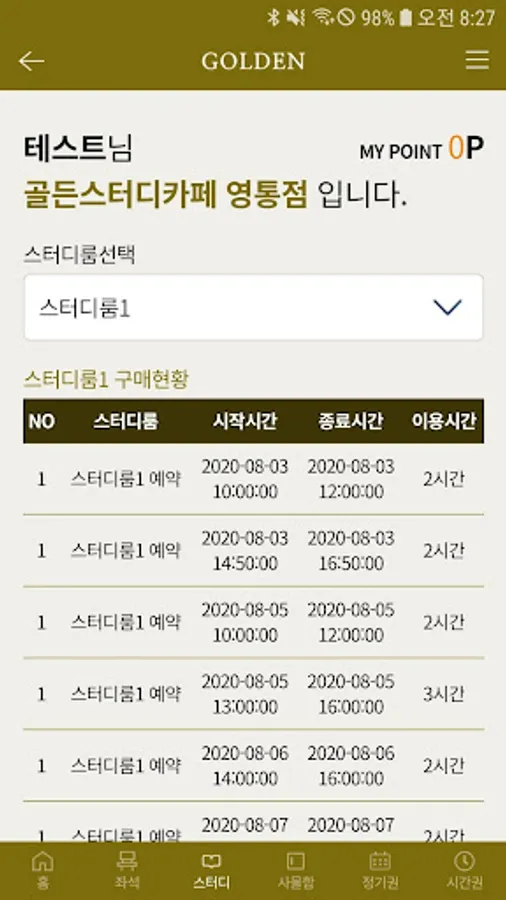 The Golden Study Cafe app not only makes it easy to use and pay for the service in operation of the study cafe, but also purchases seats through real-time linkage with kiosks, study room reservation, purchase locker, commuter pass purchase, usage information inquiry, point recharge and use, seating You can use the leaving room.