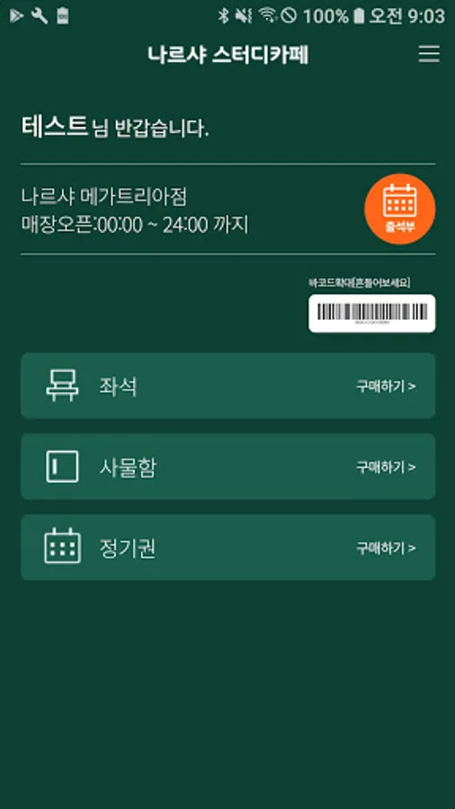 The Narsha Study Cafe app not only allows you to conveniently use and pay for the services that are operated by the study cafe, but also purchase seats through real-time linkage with kiosks, book study rooms, purchase lockers, purchase commuter passes, view usage information, charge and use points, and seats. You can use the check-out, etc.