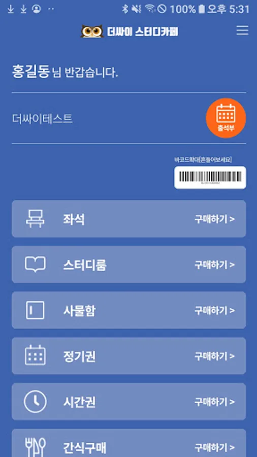 The Cystudy Cafe app not only allows you to conveniently use and pay for the services that are operated by the study cafe, but also purchase seats through real-time linkage with kiosks, book study rooms, purchase lockers, purchase commuter passes, view usage information, charge and use points, You can use the seat exit, etc.