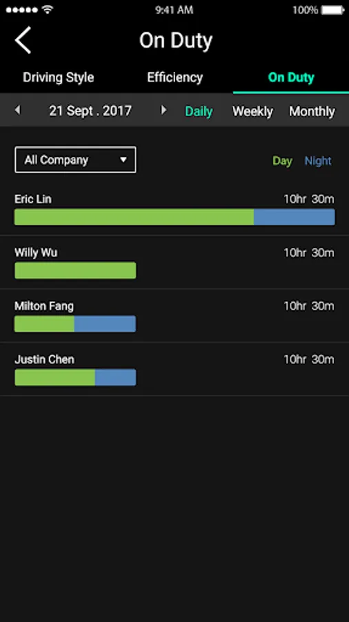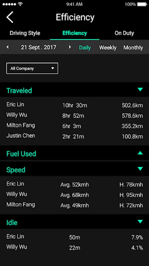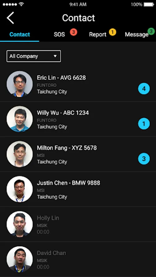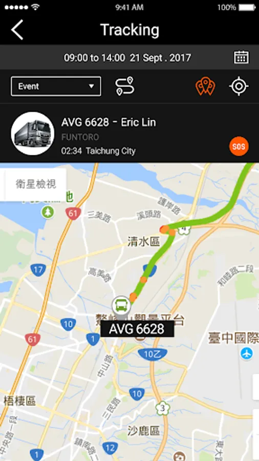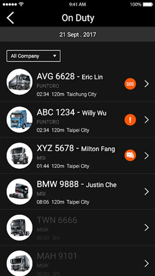 -Complete visibility of your fleet vehicles with on-duty status, driver information and latest SOS event details.