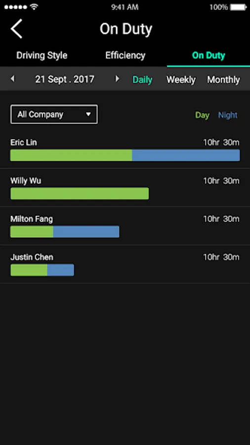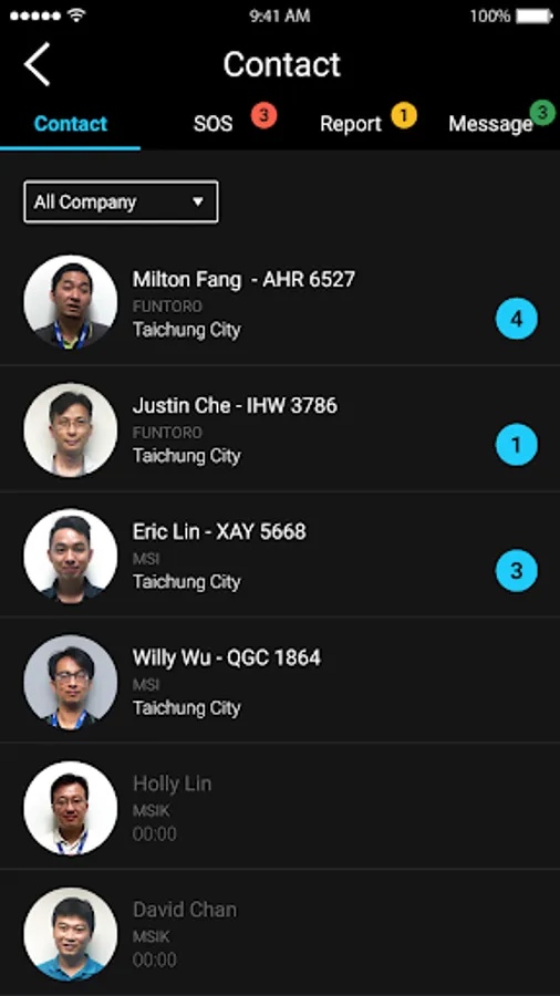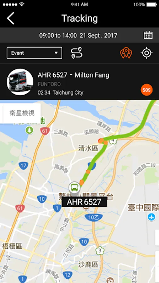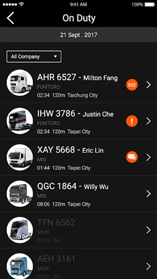 -You can see the list of your fleet vehicles with on-duty status, driver information and latest SOS event details.
