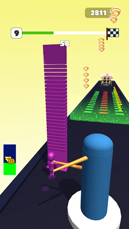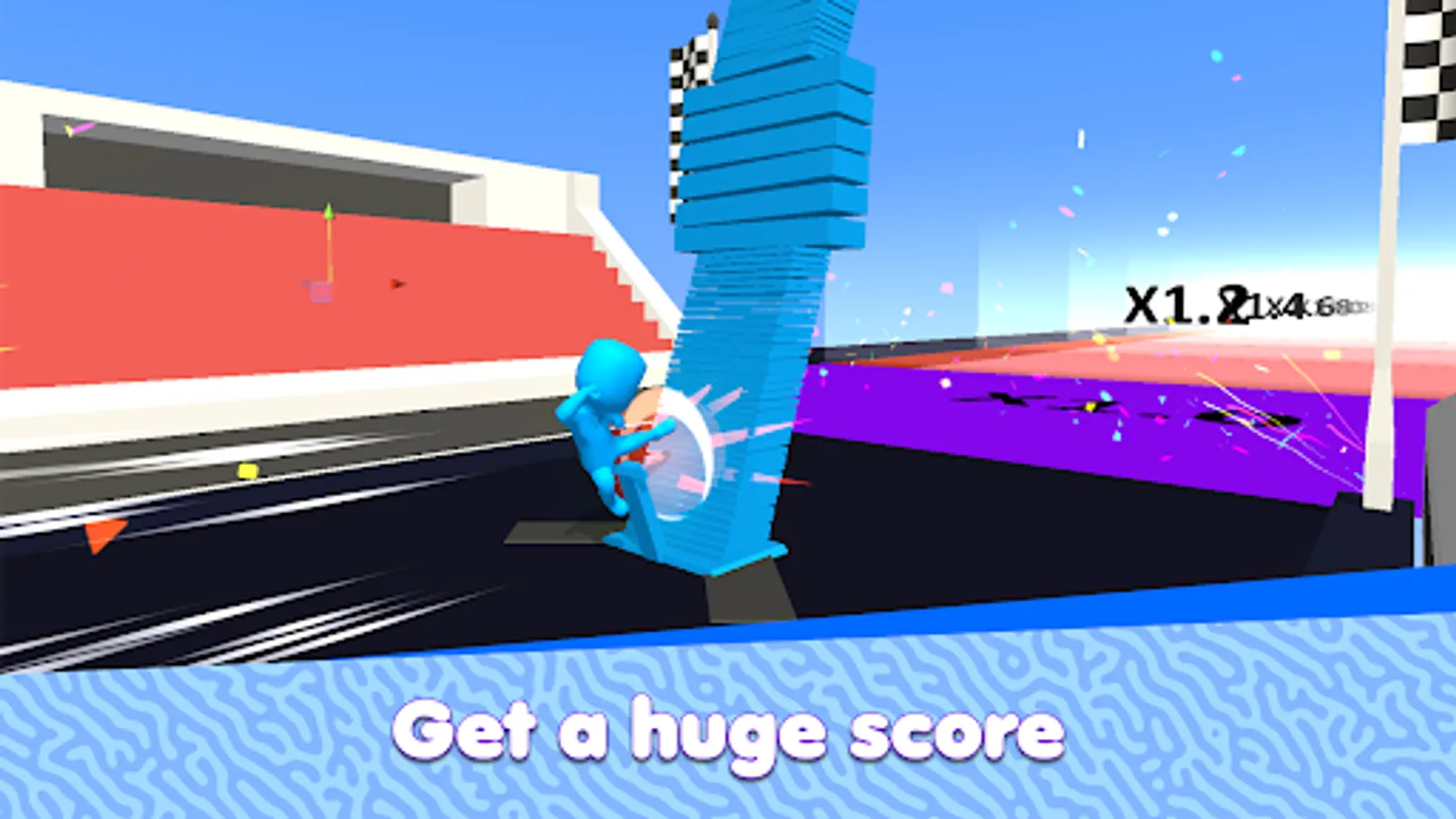 Collect the right color platforms and stack them to build a higher pillar, then kick em at the end!