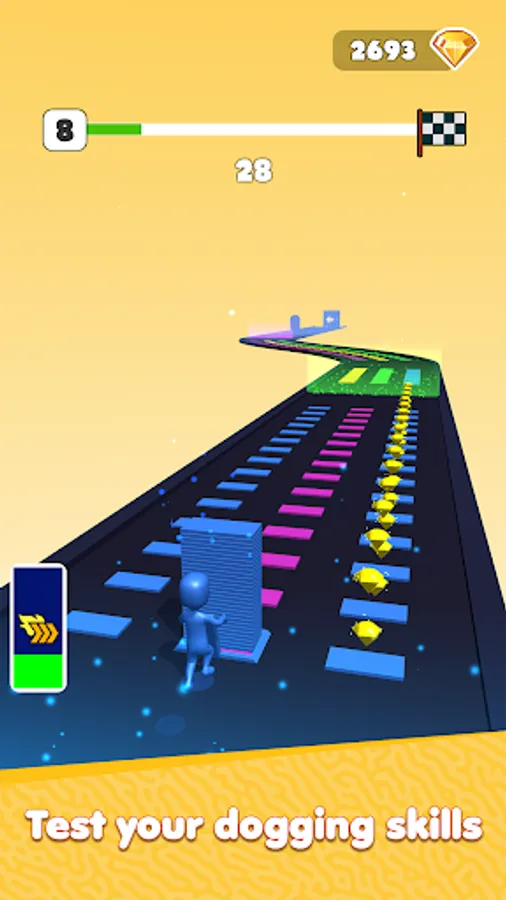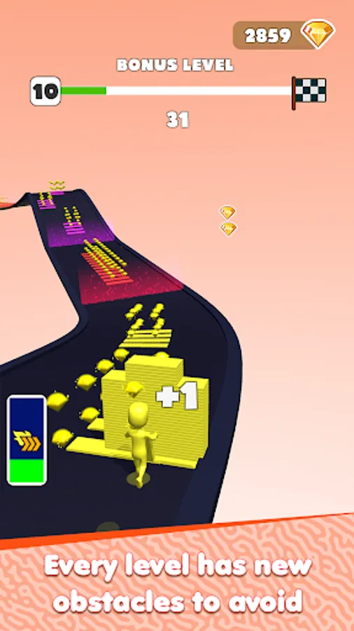 Get diamonds through obstacles and use them to increase your strength and speed.