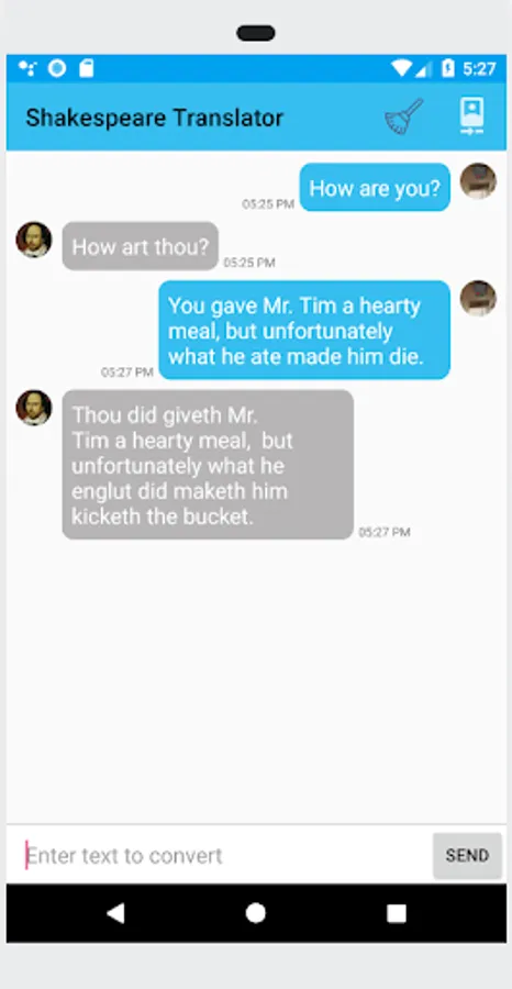 Translate from present day English to Shakespeare English. Shakespeare's complex sentence structures and use of now obsolete words makes the translated sentences really funny and as some claim more academic. Thou sir prithee enjoy translating!