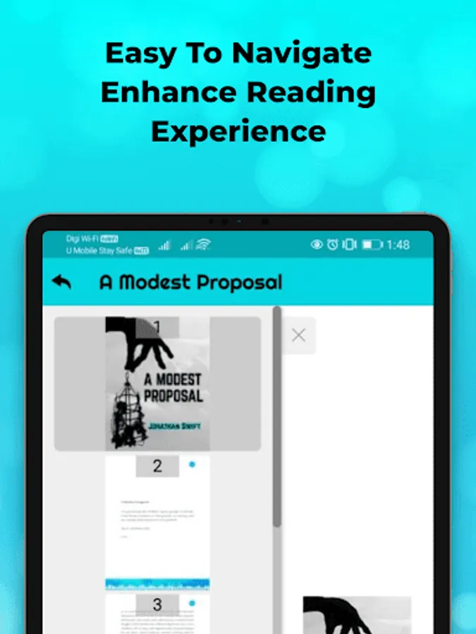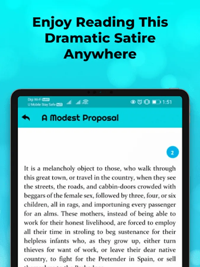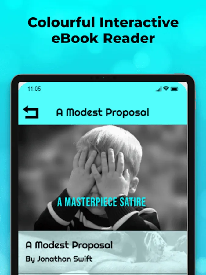 A Modest Proposal EBook Reader app is free and available for download on android devices. Join the new read era with this convenient Book reader pdf epub format which is more interactive, and fun way of reading novels and stories right now. We enjoyed transforming the novel into a free ebook reader for your reading convenience and enjoyment. So now you can enjoy interactive engaging free ebooks anywhere, anytime, even on the go. Please note the first download of the colorful illustrated free ebooks will take slightly longer depending on your internet connectivity. This free ebook reader is easy to navigate with a side menu, bookmark, zoom-in functions, and hyperlinks to the respective chapters.