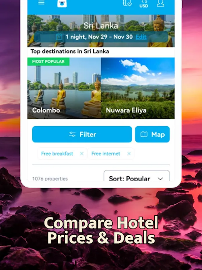 As a travel planning resource Sri Lanka Trip Advisor aims to provide you with trip itinerary suggestions hotels and apartment booking links flights and transportation booking recommendations restaurant menu shopping and other attractions suggestions. In this app you can search and compare options on hotel booking combined page for best deals and best located hotels apartments and your preferred type or budget accommodation to suit your travel needs.