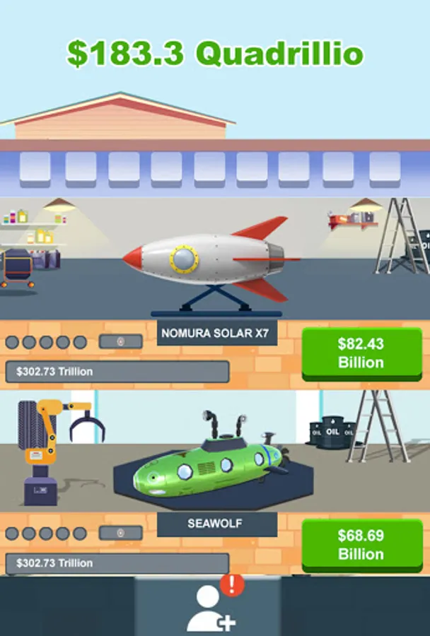 Start from manufacturing scooter. Work hard and expand the factory. Hire managers to keep the money flowing. Unlock cars, submarines and rockets in new levels.