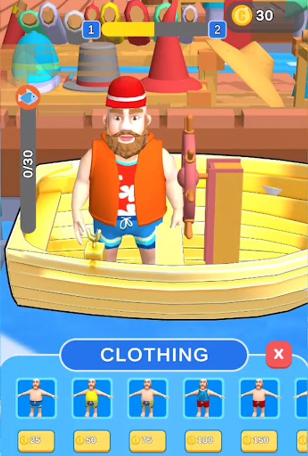 Buy various cloths from floating clothing shop to make you fisherman look cool!