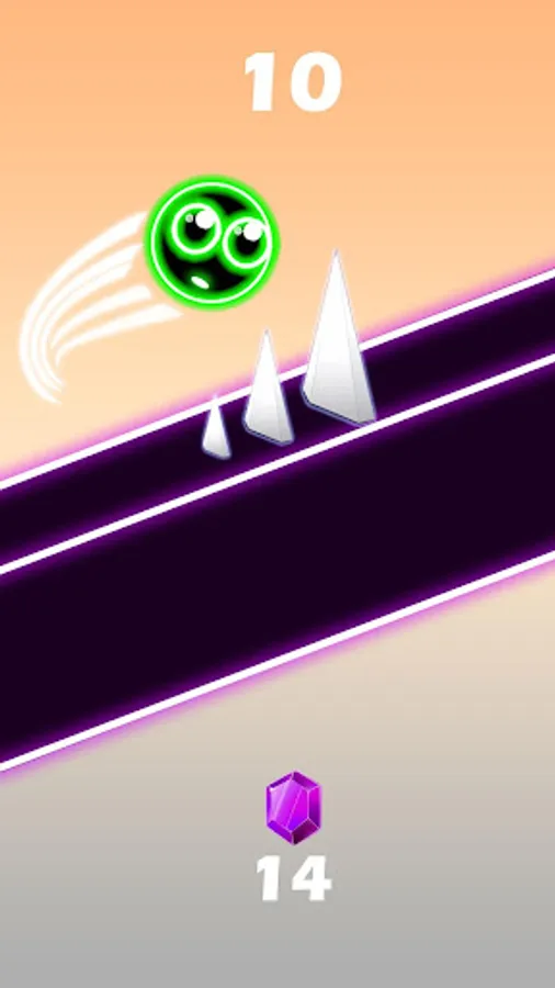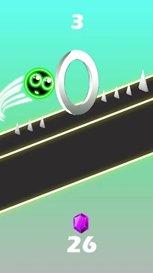 Keep rolling and tap to jump 3 times before falling on the surface again. Try to avoid the obstacles! Survive and collect gems by doing as many jumps as you can!