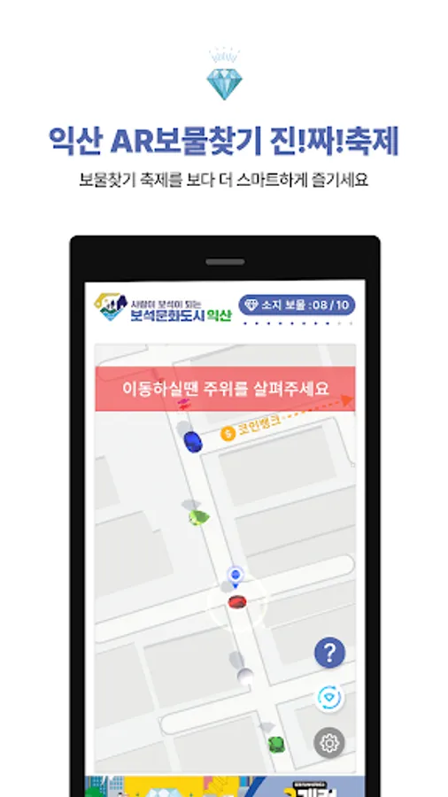 전북 익산 영등동 귀금속단지 일대에서 펼쳐지는 축제장에서 실행이 가능한 AR게임입니다.