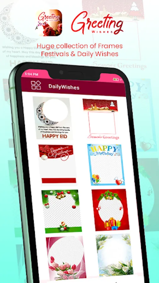 * Each category has beautiful collections of wishes cards, animated gifs with text messages & Frames