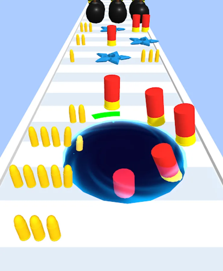 In this black hole game, you'll control a powerful hole to collect all the bullets in sight. Unleash the power of the hole, you will become bigger, faster, and more powerful, allowing you to complete each level quickly and efficiently and to swallow and eat more yummy weapons down the hole.