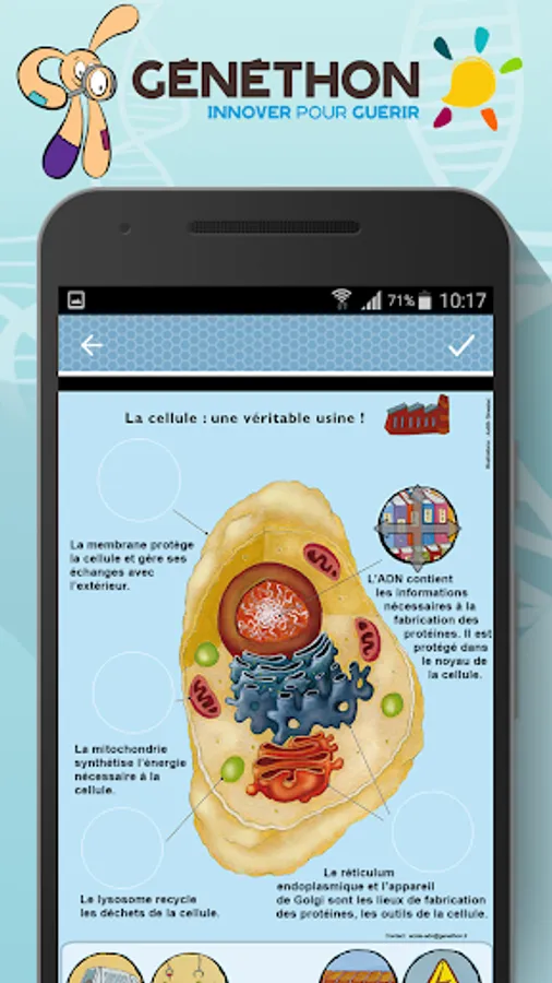 This application is fully exploitable, support the animation of giant cell, scientific activities proposed by the school of DNA Genethon. Contact: 01-69-47-11-75 ecole-adn@genethon.fr