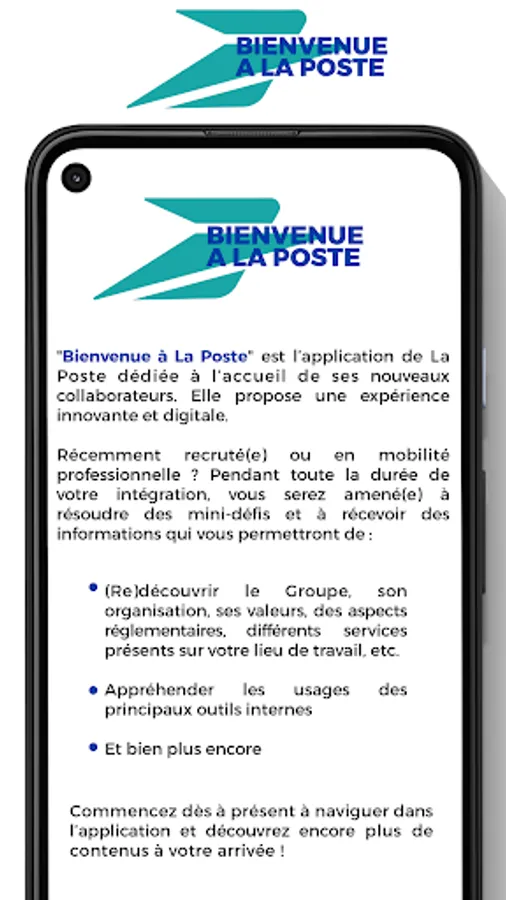 "Welcome to La Poste" is the La Poste application dedicated to welcoming new employees.