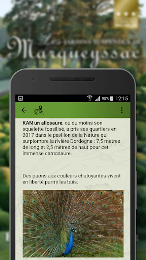 This interactive map depicts the promenades so that you benefit from a fun and unique exploration of the gardens and landscapes: image recognition, augmented reality, geolocation, mini-games and fact sheets.