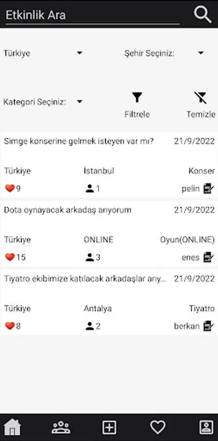 For example, you're going to the movies and don't want to go alone? Find the event that suits you and join now. If you can't find what you're looking for, create the event you want.
