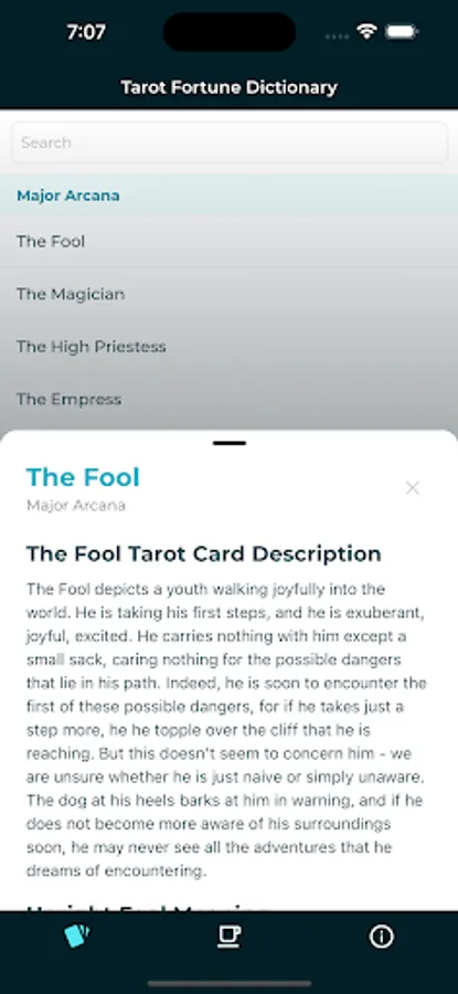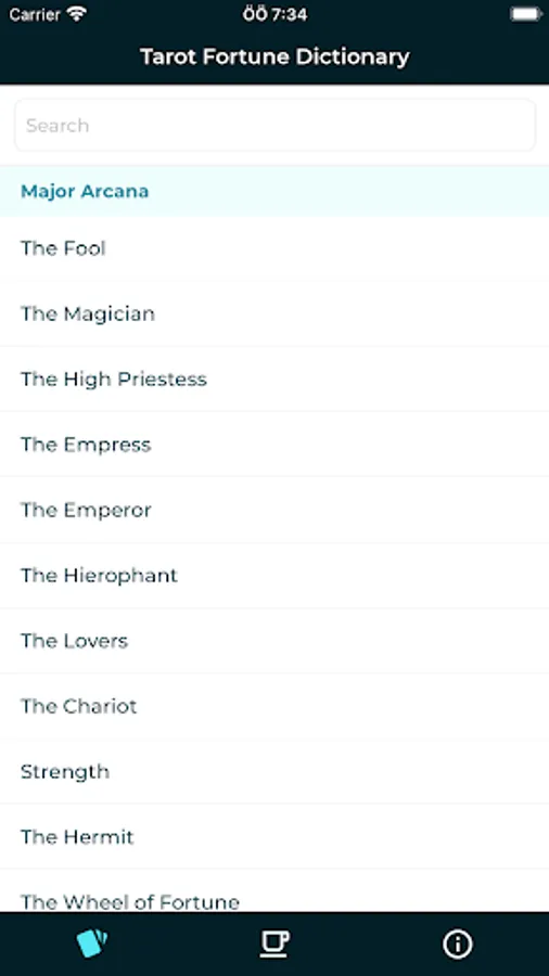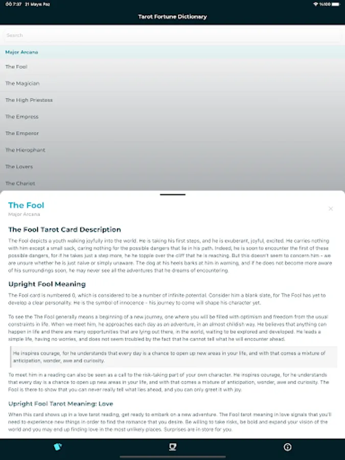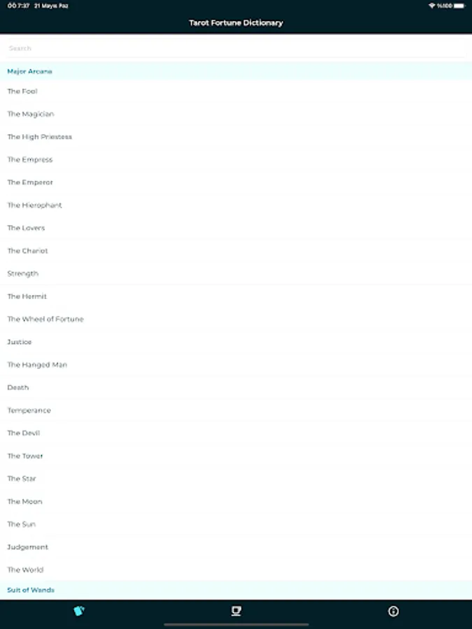 The Tarot and Coffee Fortune Dictionary is an ideal tool to unravel the mysterious world of Tarot cards and coffee fortune readings. This application offers comprehensive explanations of the deep meanings behind 78 unique Tarot cards and over 900 coffee fortune symbols, aiding you in decoding your readings.