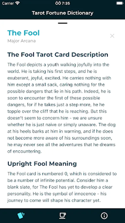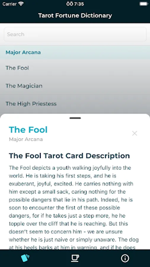 Equipped with an expansive library detailing each Tarot card and coffee fortune symbol, the application puts all the information you need to delve into your future right at your fingertips. No longer will you wonder about the meanings of Tarot cards or images in your coffee fortune.