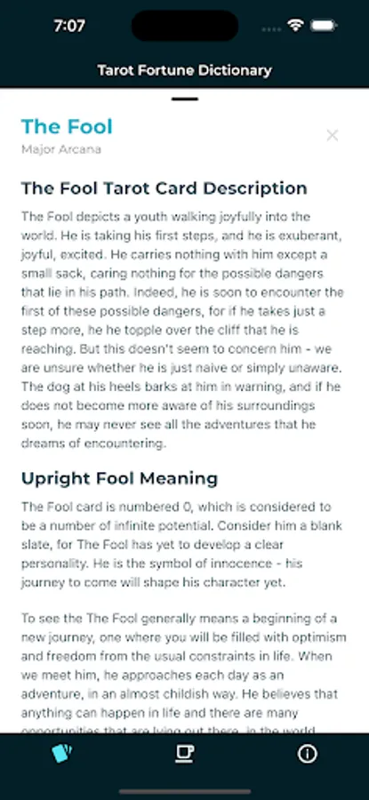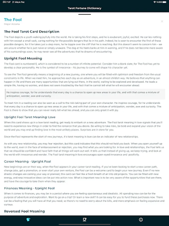 Everyone holds the capability to interpret their own fortune, and this application aids in unearthing and honing these skills. It teaches you what questions to ask when interpreting your fortune, the meaning of symbols and colors, how the cards converge, and more.