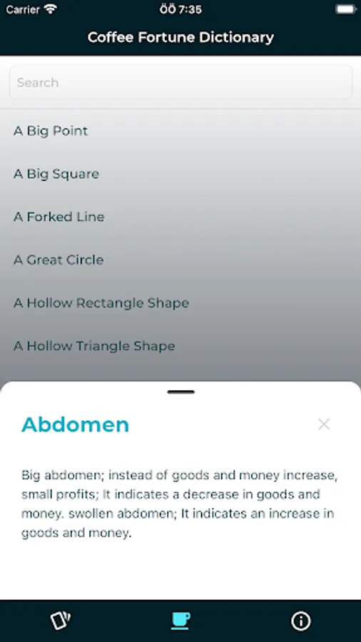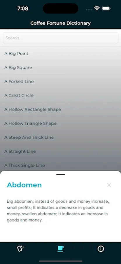 Use the Tarot and Coffee Fortune Dictionary to transform your Tarot and coffee fortune readings for yourself, friends, or family into a deeper, more meaningful, and personal experience. When you read your coffee fortune or draw your Tarot cards, the wealth of information and interpretations this application holds will allow you to gain a deeper understanding and insight.