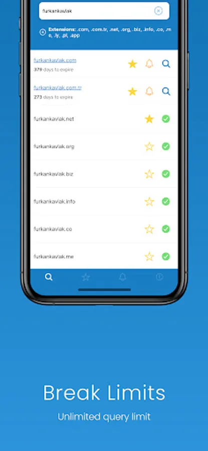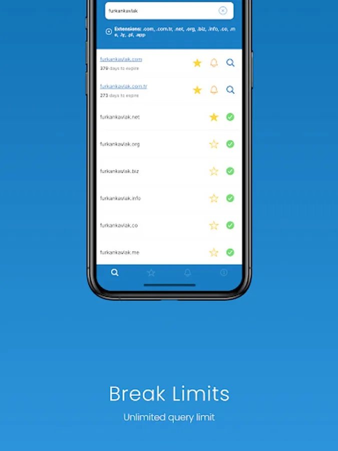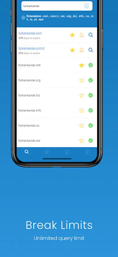 - Save and quickly access the domains you are looking for and/or owned