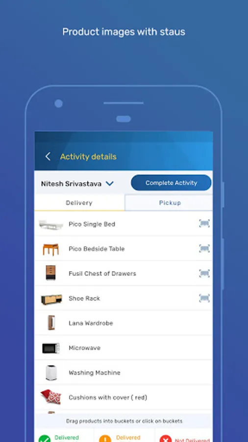 • Scan Barcodes to update SKU status in Warehouse.