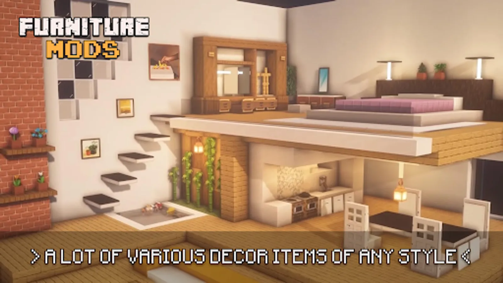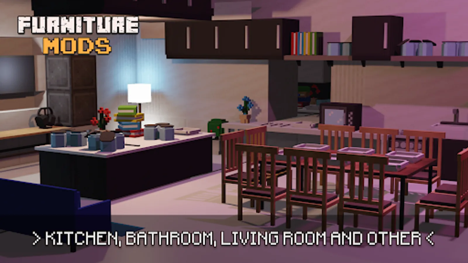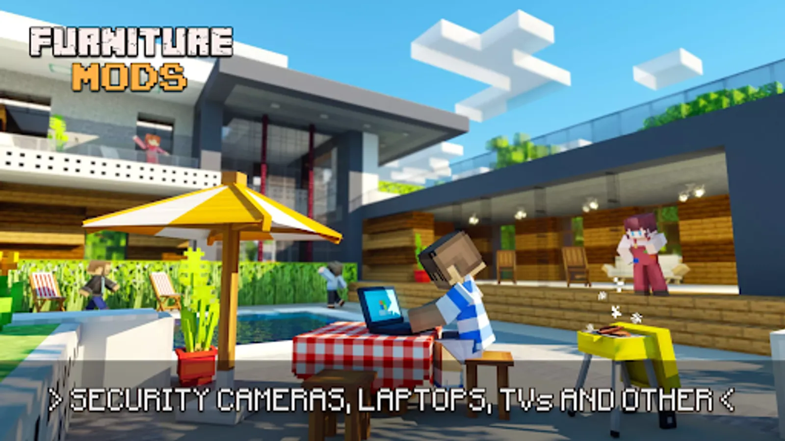 If you've always wanted to find awesome furniture mods for Minecraft, you've come to the right place! Mods for MCPE from our selection will allow you to decorate your home with beautiful and elegant furniture for MCPE (and Bedrock). You'll find a huge variety of decor items to suit all your rooms, including the living room, bathroom, bedroom and kitchen. Our mods with furniture for minecraft and decoration addons for MCPE include security cameras, modern tools, elements of interior design and appliances such as TVs, Beds, Chairs, Tables, Cabinets, Computers and Laptops and more. Also, this app includes buildings, mansion and modern house maps where you can test all the furniture in Minecraft PE. Turn your home into the dream and bring to the game real furnicraft experience!