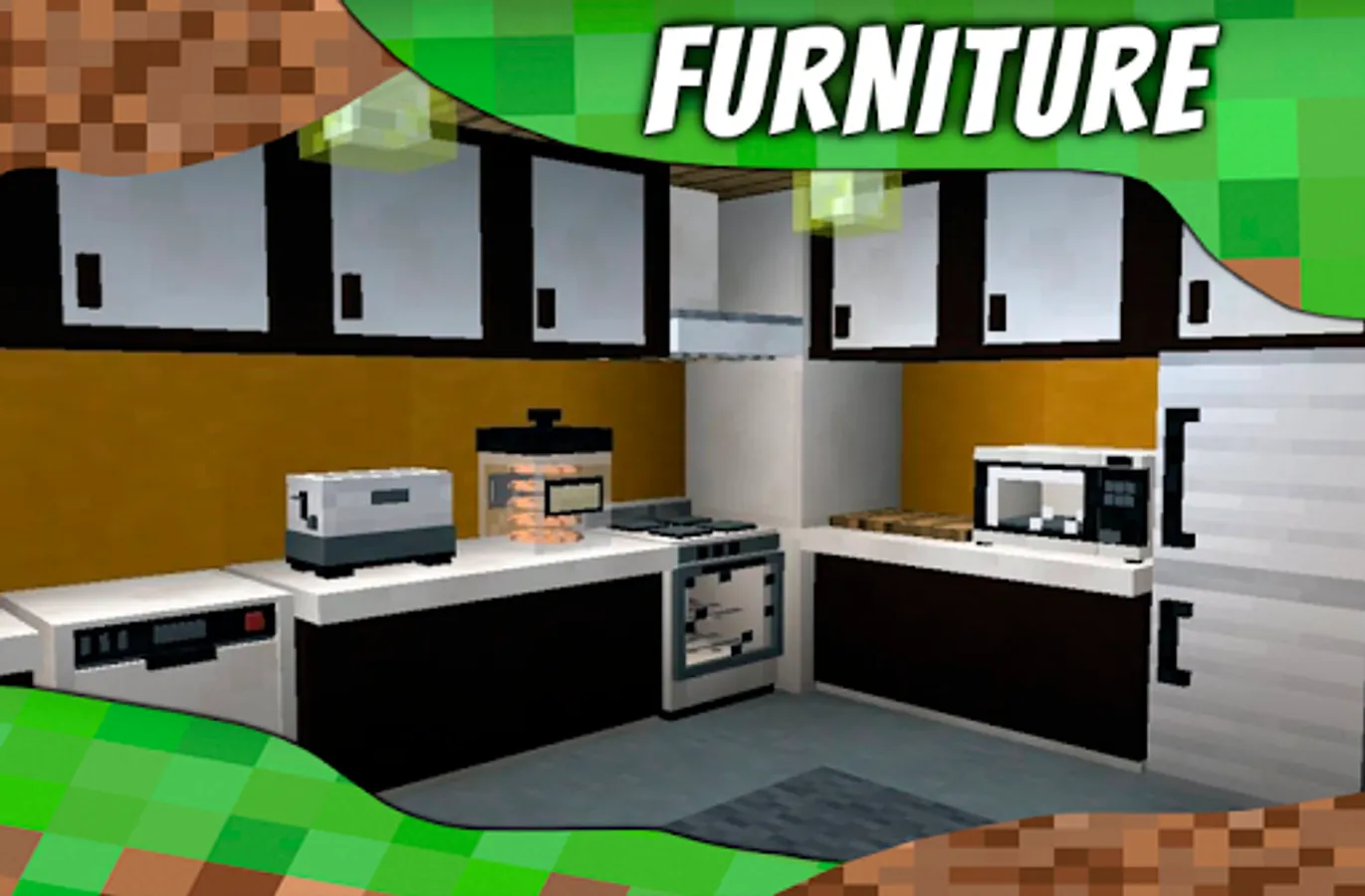 Mod for furniture. Furniture mods for Minecraft is a free collection of mods and maps for furniture. A new mod for furniture that allows you to create impressive decorations both inside your home and outside. By installing the mod on furniture on minecraft pe, you can safely equip your kitchen, equipping it with a kitchen set. Furniture mod gives you the opportunity to realize your ideas, realize yourself creatively.