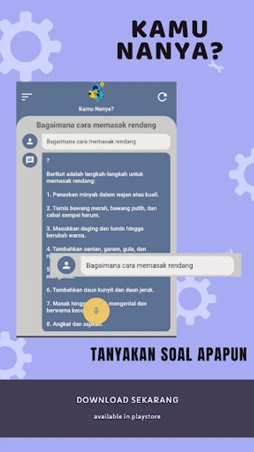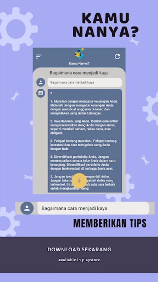 Kamu Nanya – is a revolutionary AI chatbot and assistant powered by advanced ChatGPT technology. Our AI model uses the same AI technology that ChatGP already uses. If you have a question about anything, any problem and anywhere but haven't found an answer or just need a soulmate, our gpt dialogue is ready to answer it. built with a simple and easy to use interface, just press a button and ask any question, we will give you an answer.