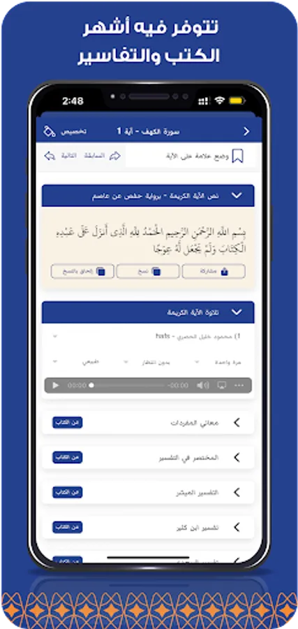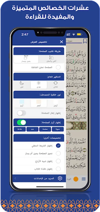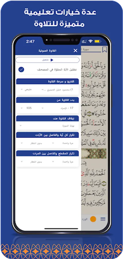 The application provides a unique experience for the reader through dozens of distinct and useful features, as it contains several useful educational options for recitation in the voices of more than 25 readers. , and many other distinctive features.